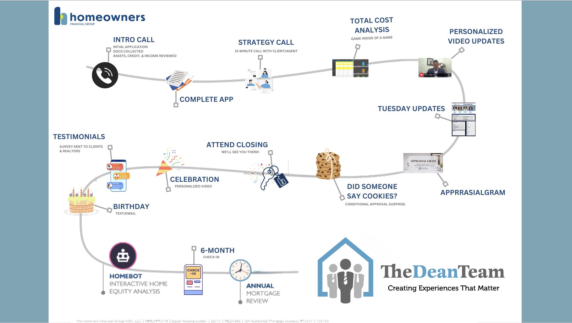 A walkthrough of the process and the unique touch points we do on every deal for the client.