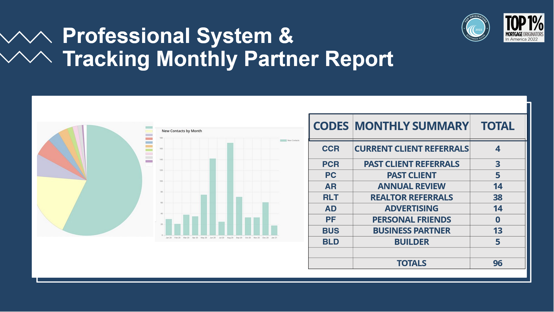Every month, we track our leads and send these to the agents we work with. This is essentially a stat report to keep our agents informed and organized.