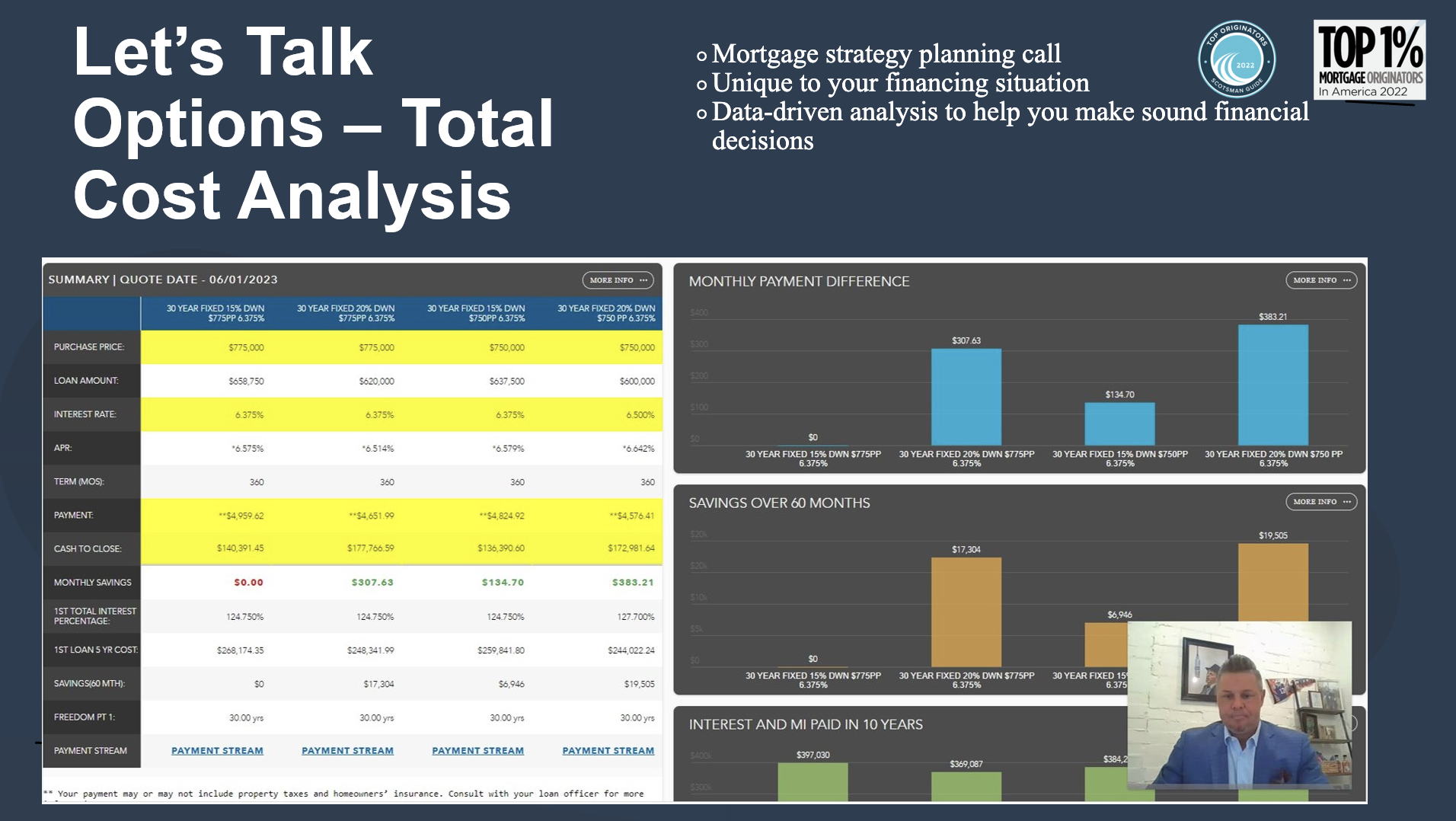 With every deal we do, our team will break down multiple different options for the client and will run through them together to find the best fit.